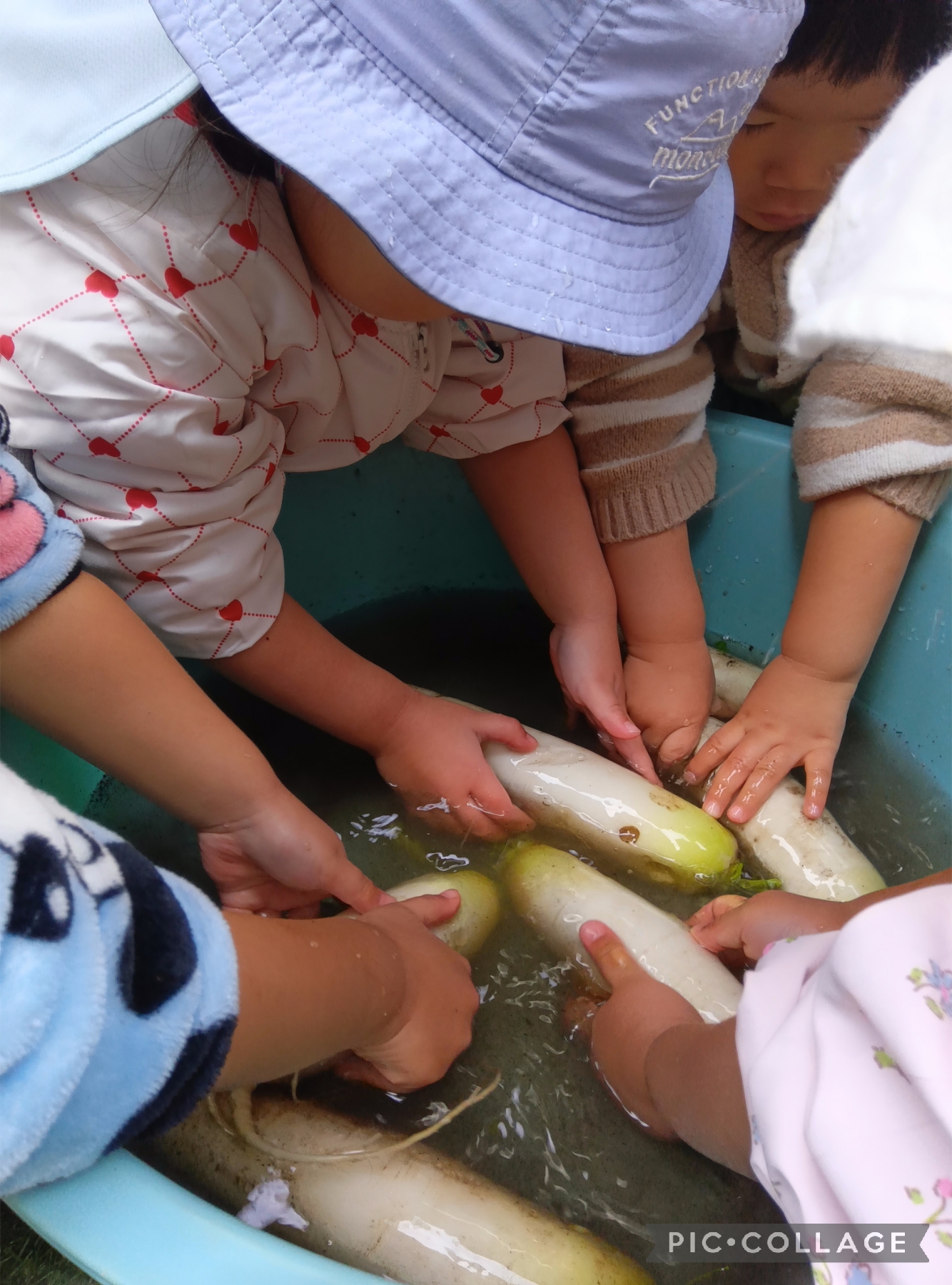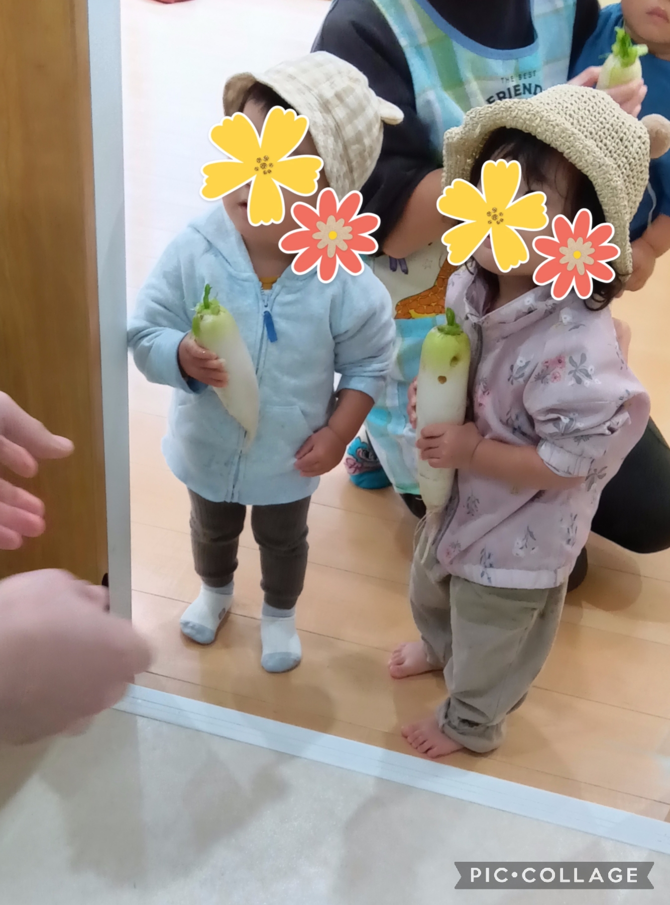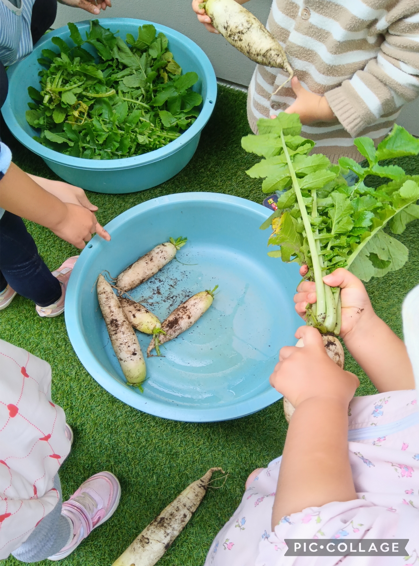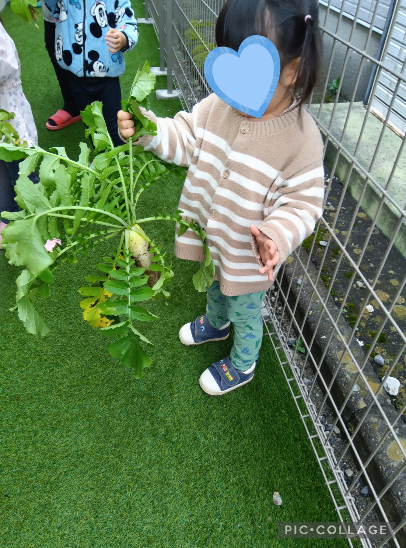 うんとこしょ!どっこいしょ!今日はおでん大根の収穫です。