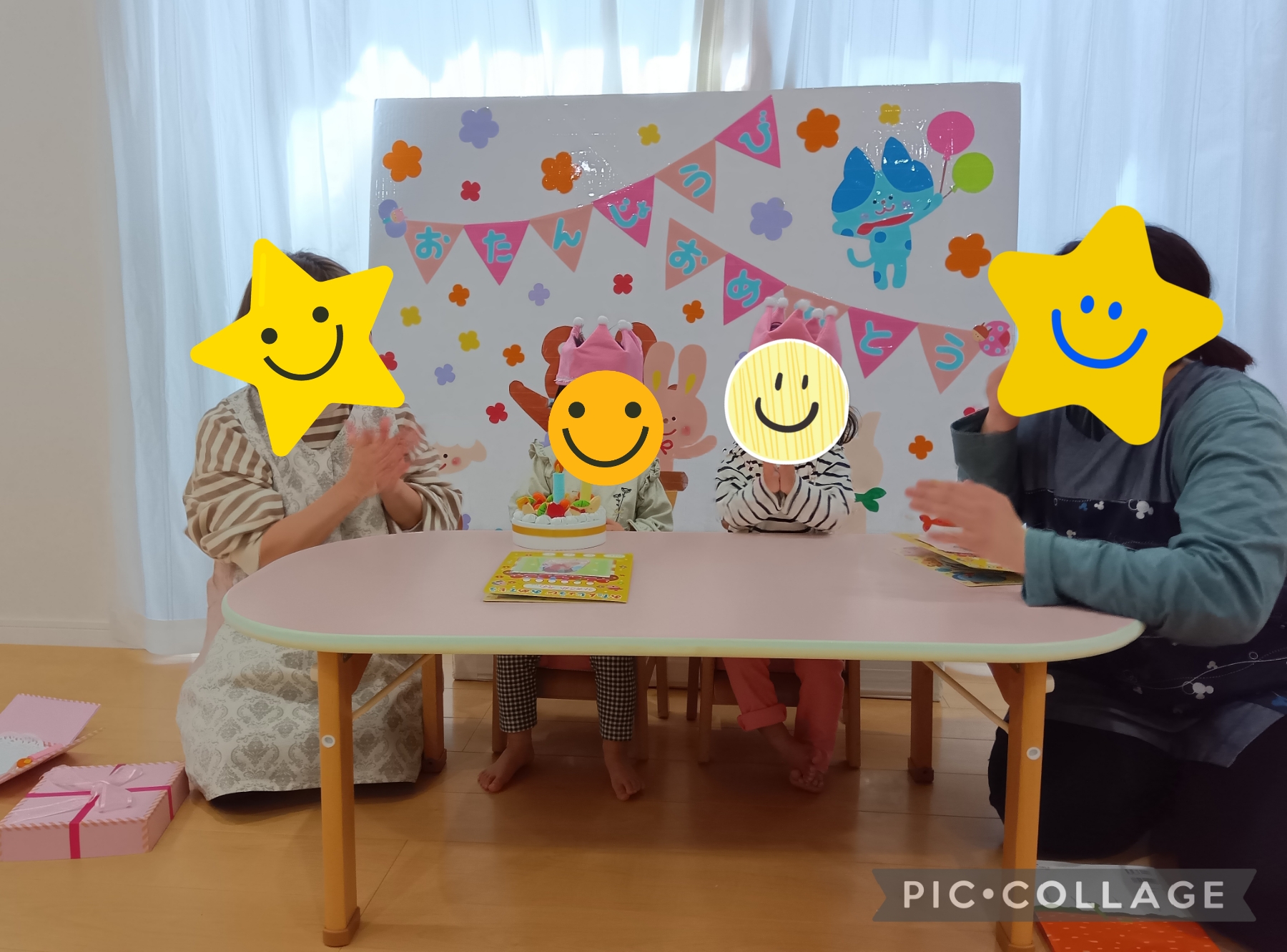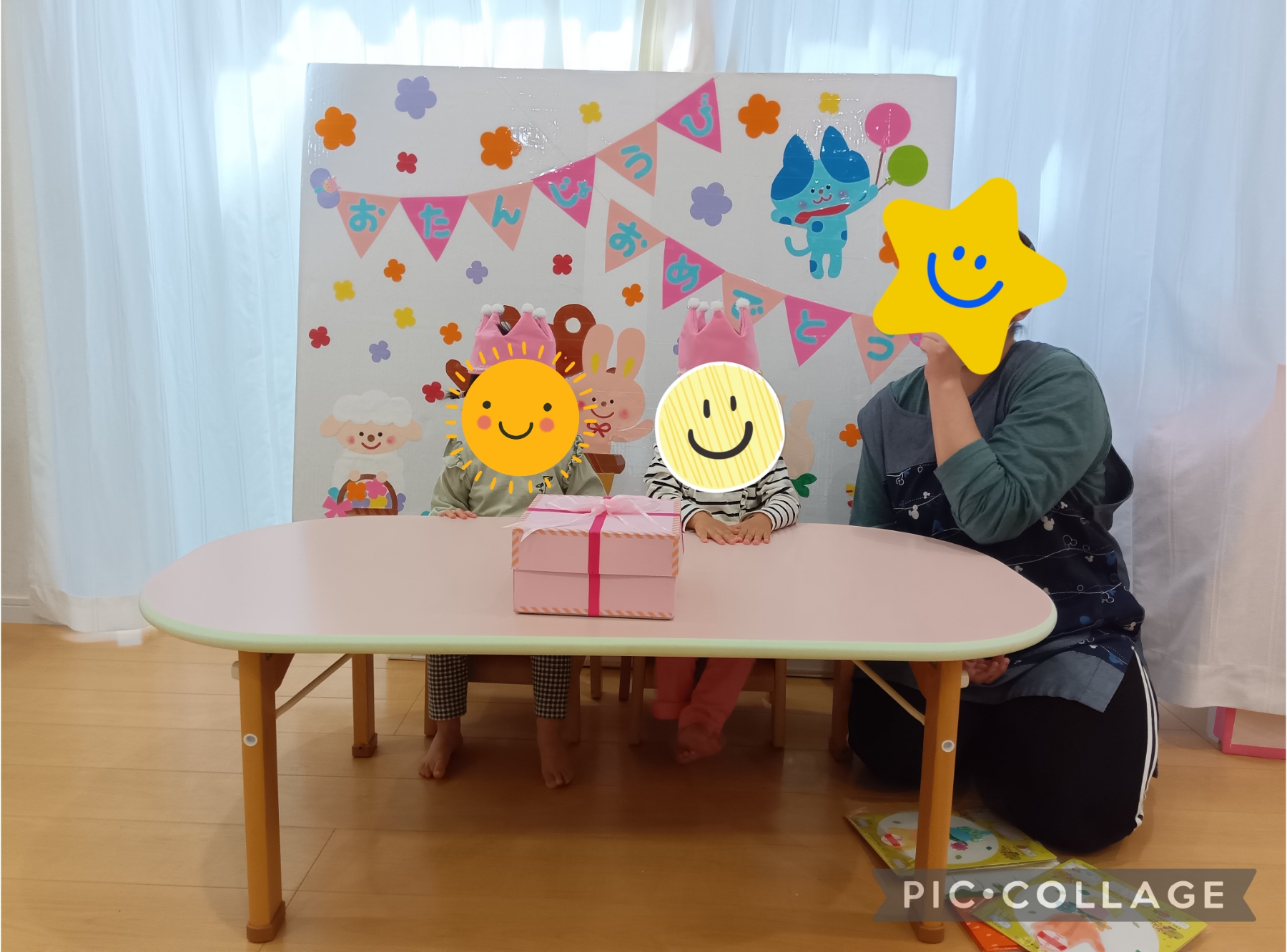 担任の先生に名前や好きな食べ物を教えてもらい、みんなで「おめでとう!」と伝えハッピーバースデイの歌を歌うと、嬉しそうな2人でした♪