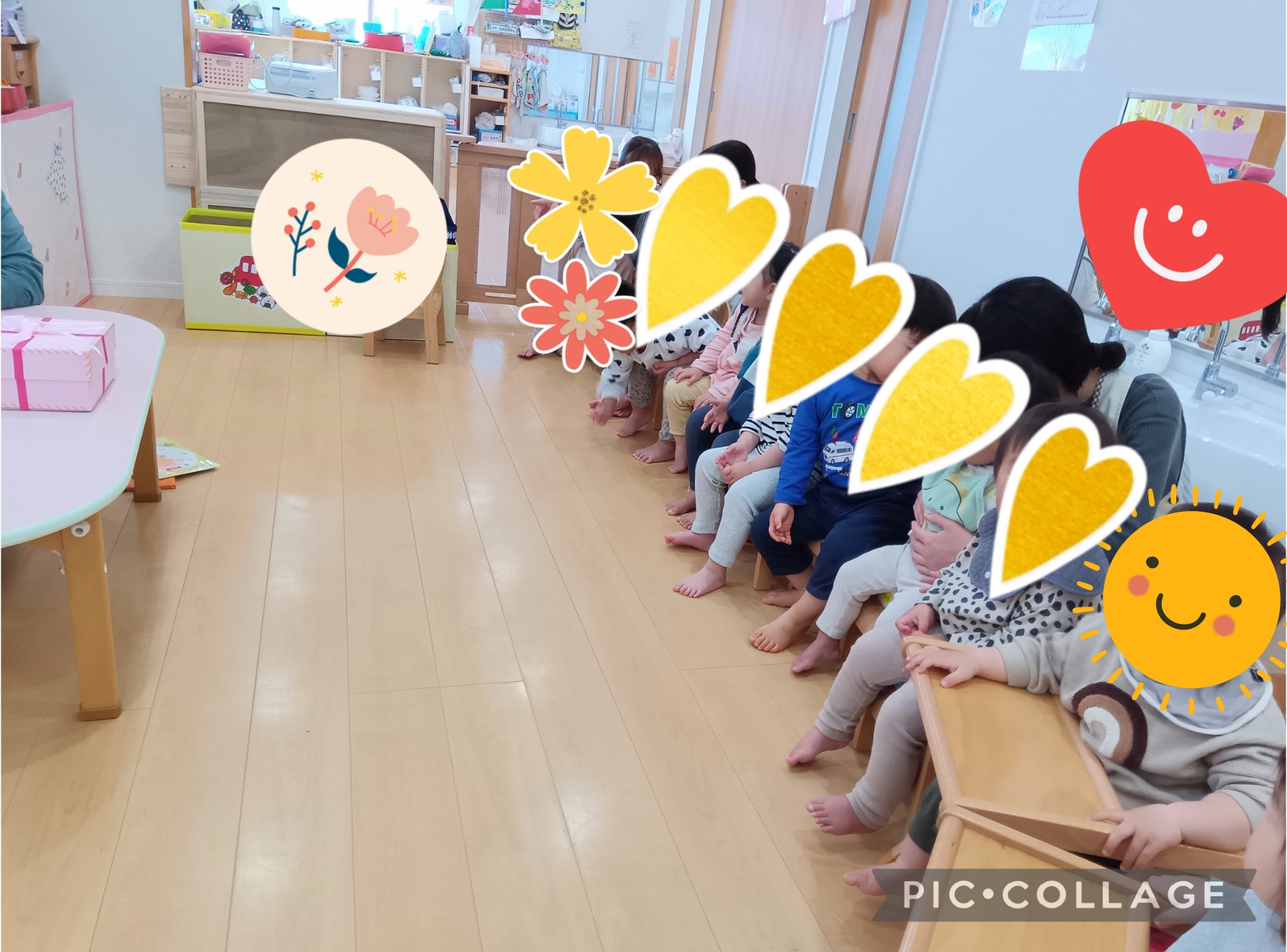 お友だちもみんなでお祝い!最後は先生からのお楽しみ絵本『いろいろおんせん』をみました。